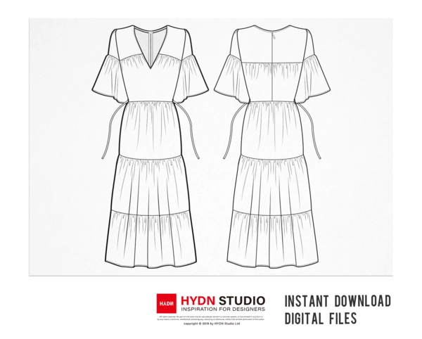 V-neck Long Dress flat sketch